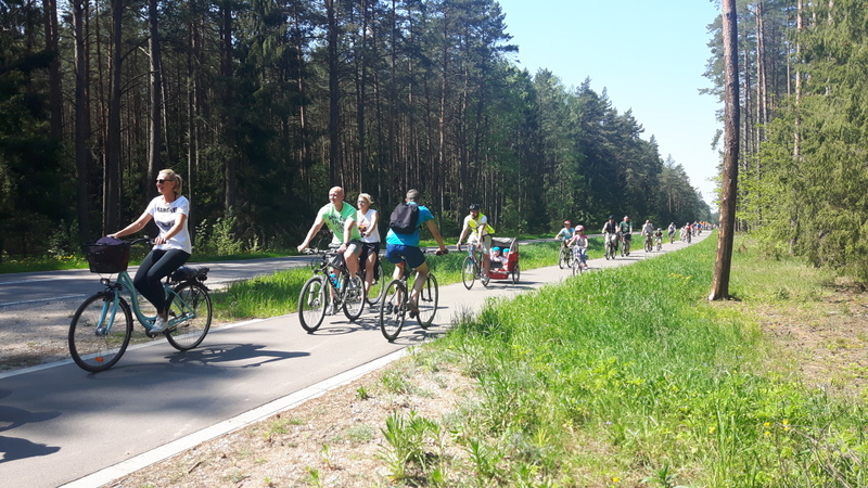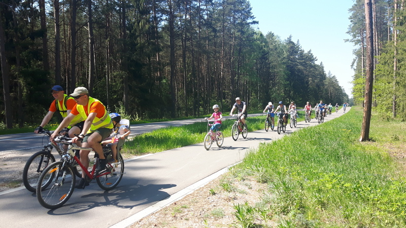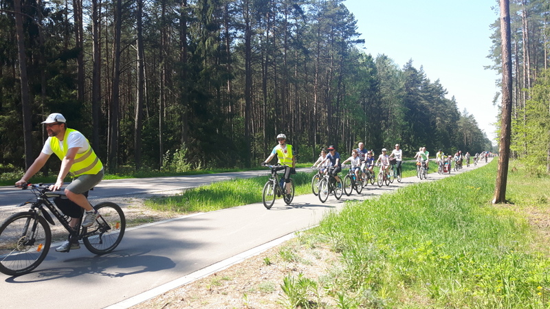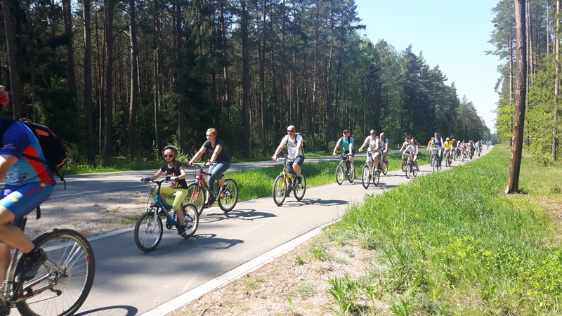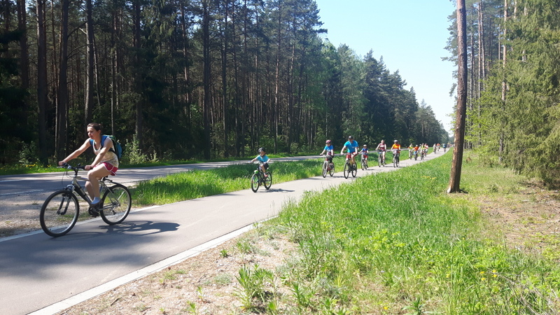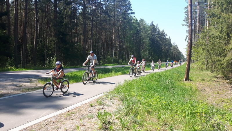 VIII Wycieczka Rodzinna 21.05.2017 Augustów. Przejazd kolumny rowerzystów do OW- SKOWRONEK